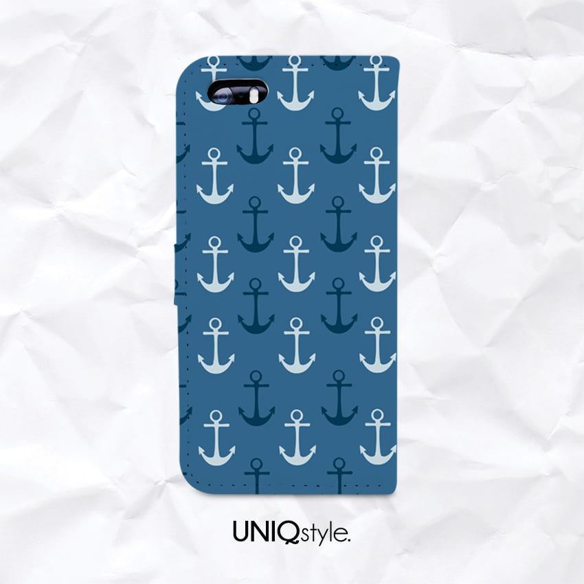 Blue Anchor pattern PU leather flip case for iPhone 7/6 Plus, Moto X, Samsung S6 Edge, S7, S8, Note 5, LG G4, Nexus 5X - A61