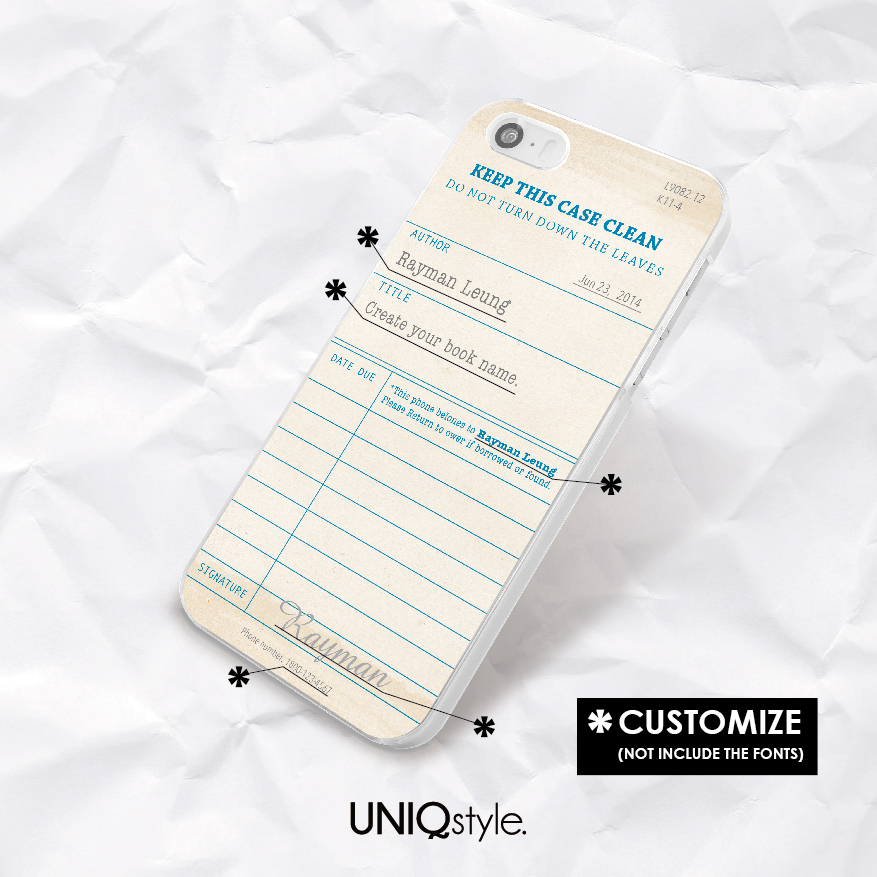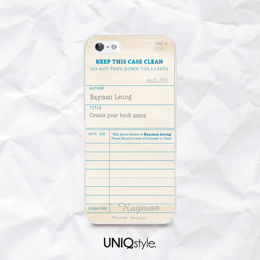 Custom personalized library card phone case for iPhone 7/6/6s, Samsung S8/S7/S6/Note5, Sony Z3/Z4/Z5, LG Nexus, Nokia, HTC One, Moto - A02