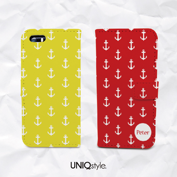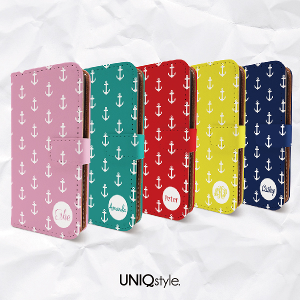 Nautical Anchor Personalized monogram Custom name PU leather case for iPhone 7/6 Plus, iPhone SE, Samsung S8/S7 Edge, Note 5, LG Nexus 5X