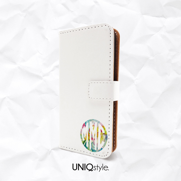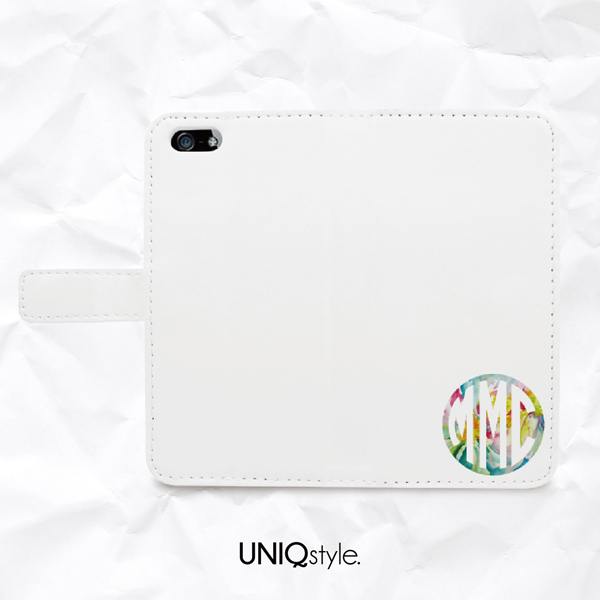 Floral flower personalized monogram Custom PU leather flip case for iPhone 7/6s, Samsung S6, S7, S8, Note 5, LG G6, Nexus 5X, HTC One M8, Moto X - i40