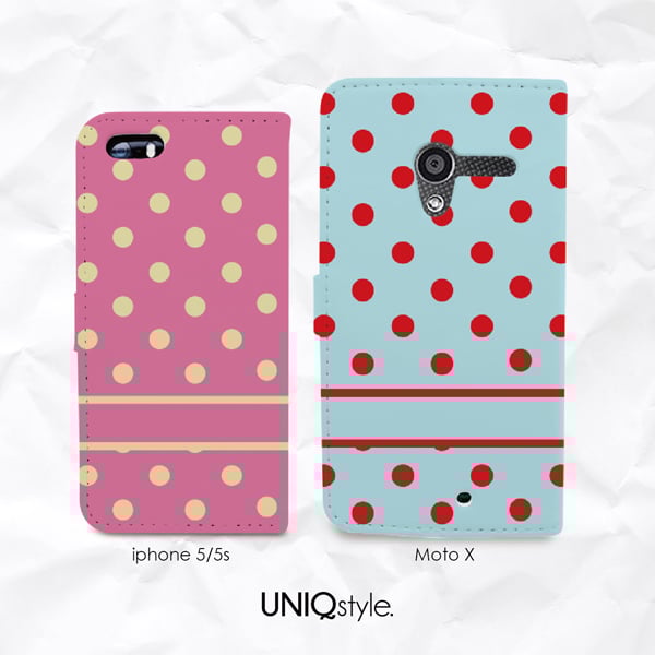 Polka dot personalized monogram name PU leather case for iPhone 7/6s, Samsung S6, S7, S8 Note 5, LG G6, Nexus 5X, HTC One M8, M9, Sony Z3 - N38