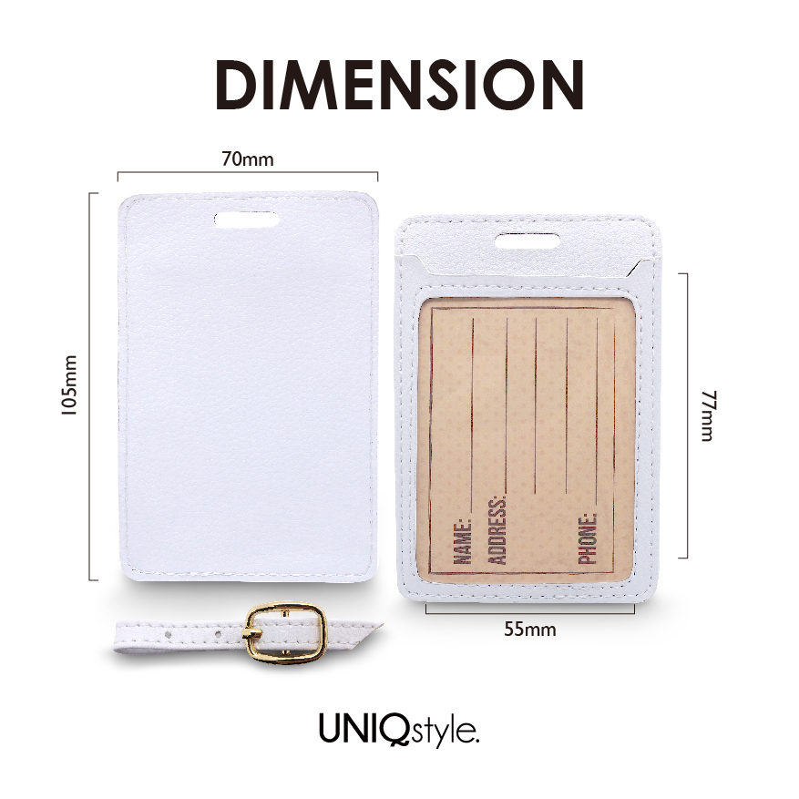 - The luggage tag measures outer dimension 2.8" x 4.1" (70mm x 105mm), inner name & address card size 2.2" X 3" (55mm x 77mm)