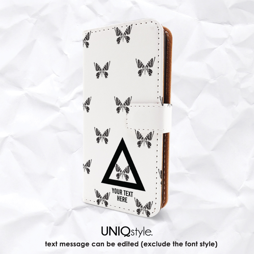 Butterfly personalized monogram Custom PU leather Flip case for iPhone 7, 6s, HTC One M9, Samsung S6, S7, S8, Note 5, Nexus 5X, Neuxs 6P, LG G6 - A62